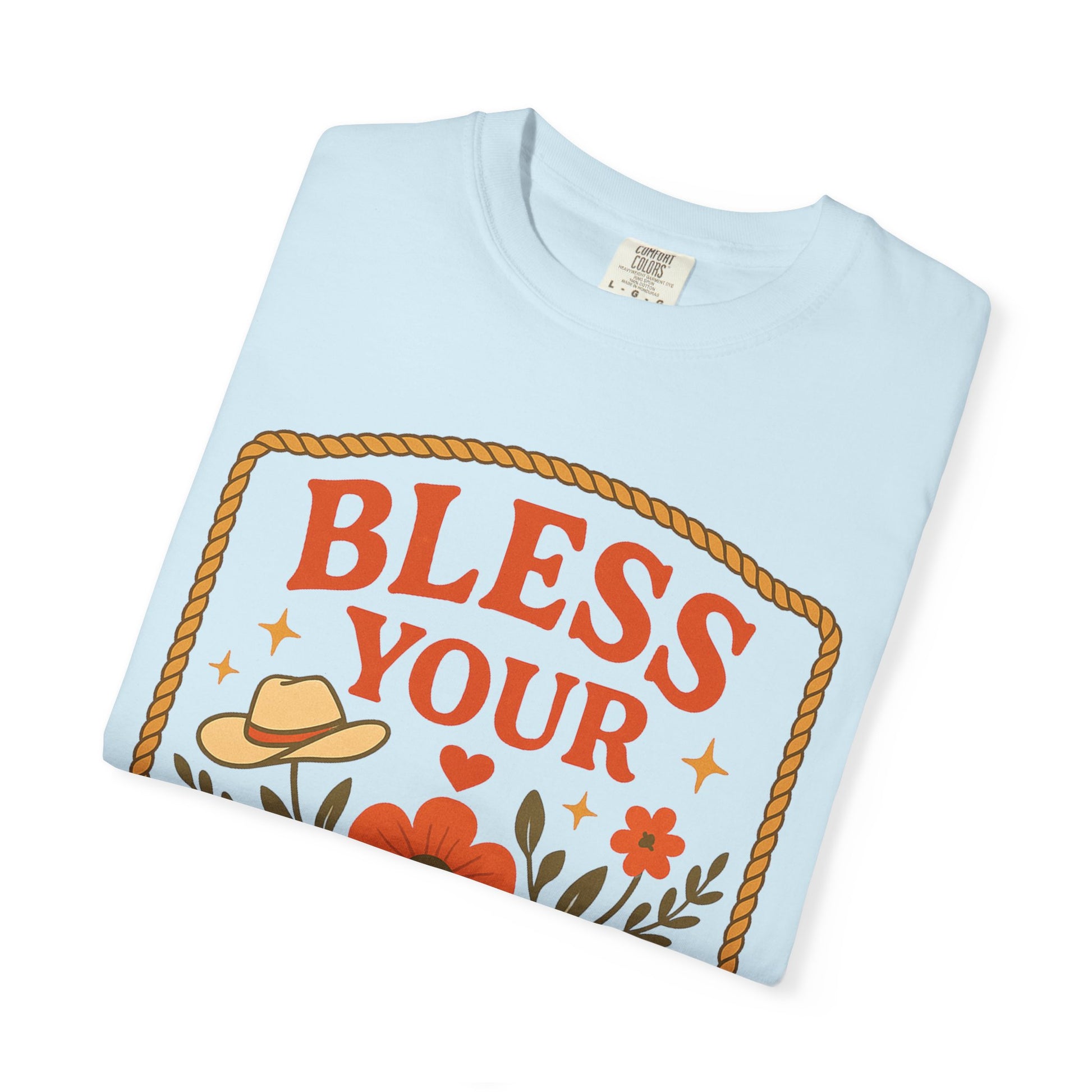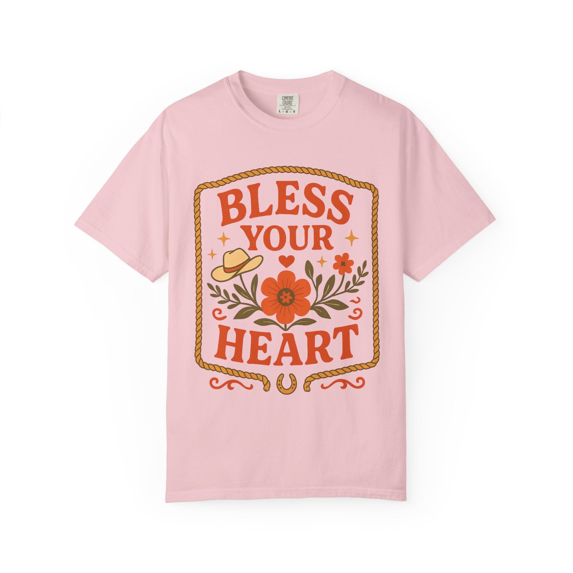 Bless Your Heart T-shirt | Floral Western Hat Horseshoe Design, Comfort Colors