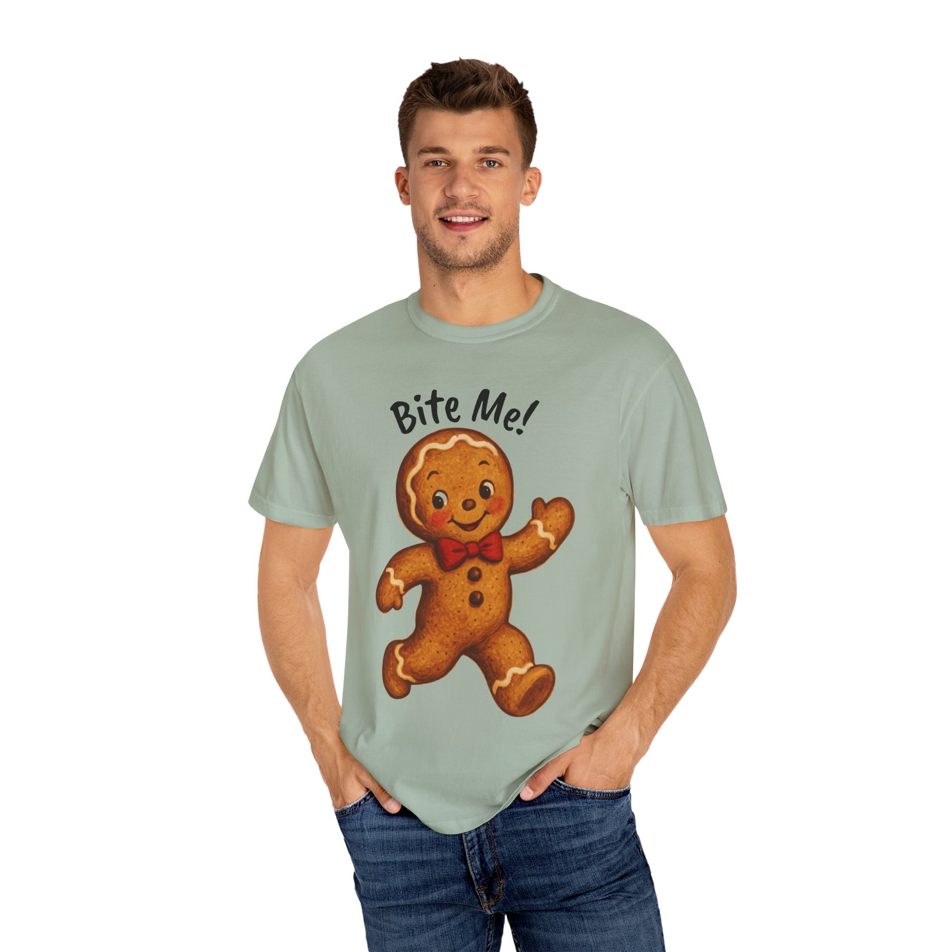 Cute Gingerbread Cookie T-Shirt | Retro Holiday Baking Graphic, Comfort Colors, Bite Me