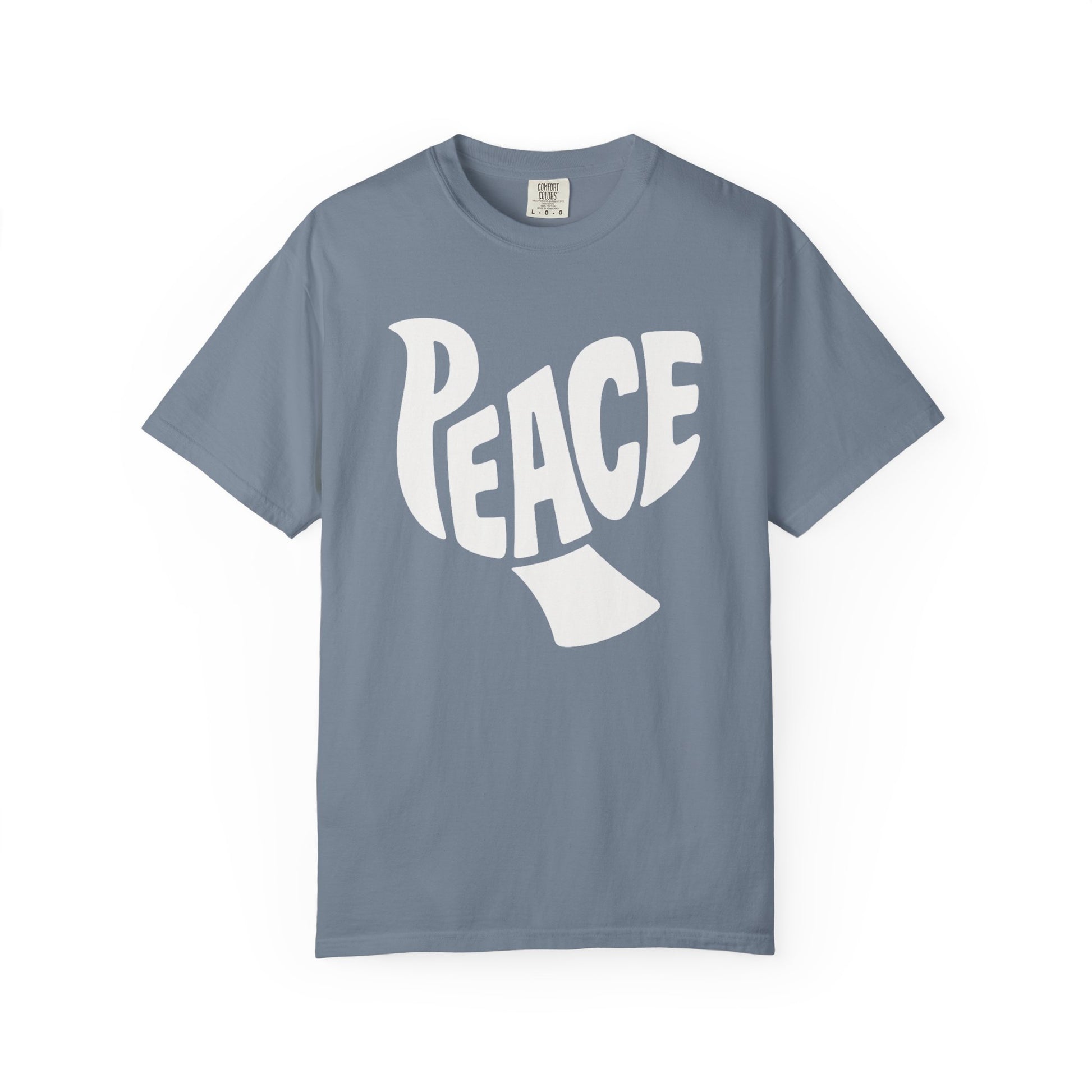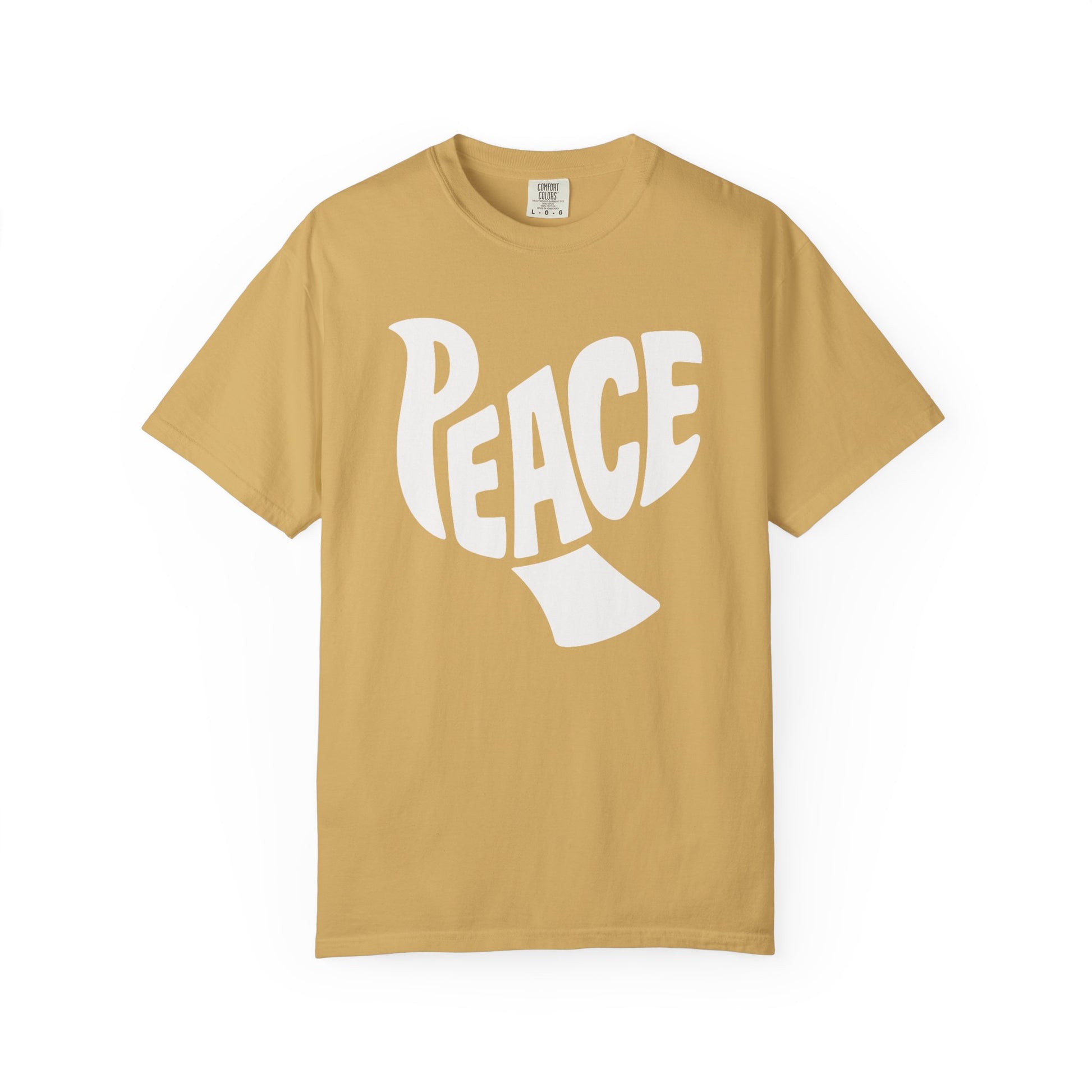 Peace in the form of a dove on a Comfort Colors unisex t-shirt. This garment provides a sense of tranquility and is perfect for casual wear. Ideal for those who appreciate peaceful designs and seek comfort in their clothing choices. Relevant for holidays such as International Day of Peace or Spiritual celebrations.