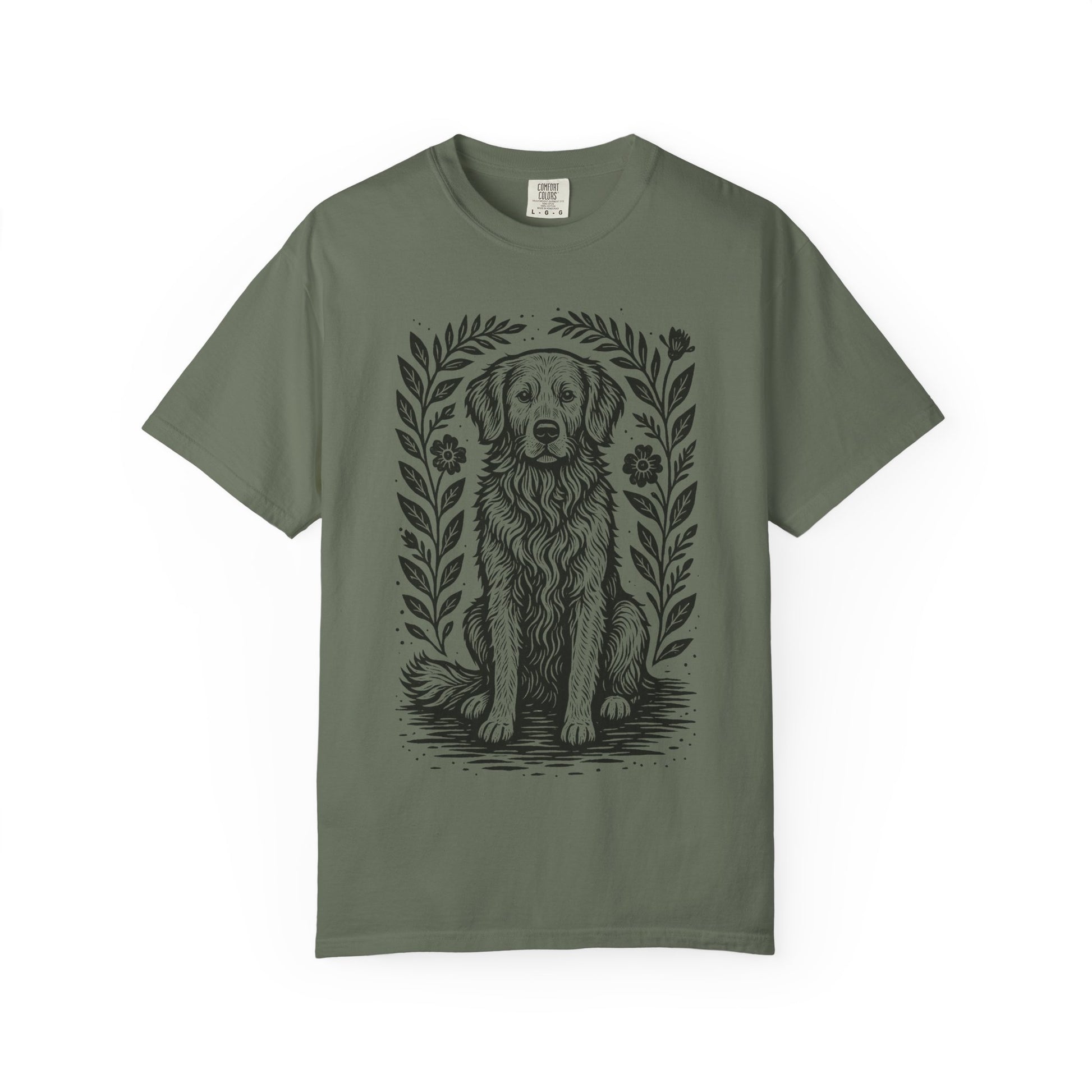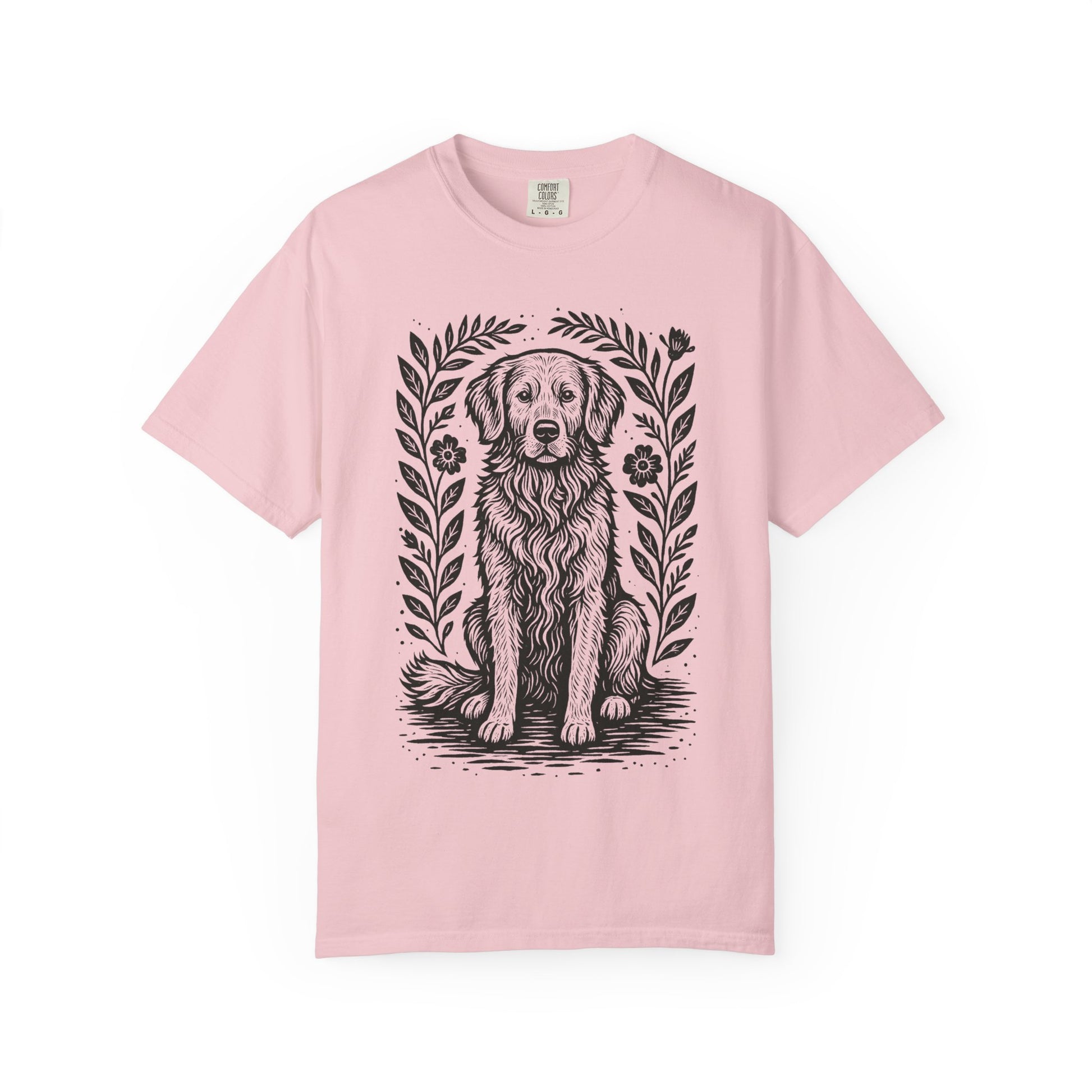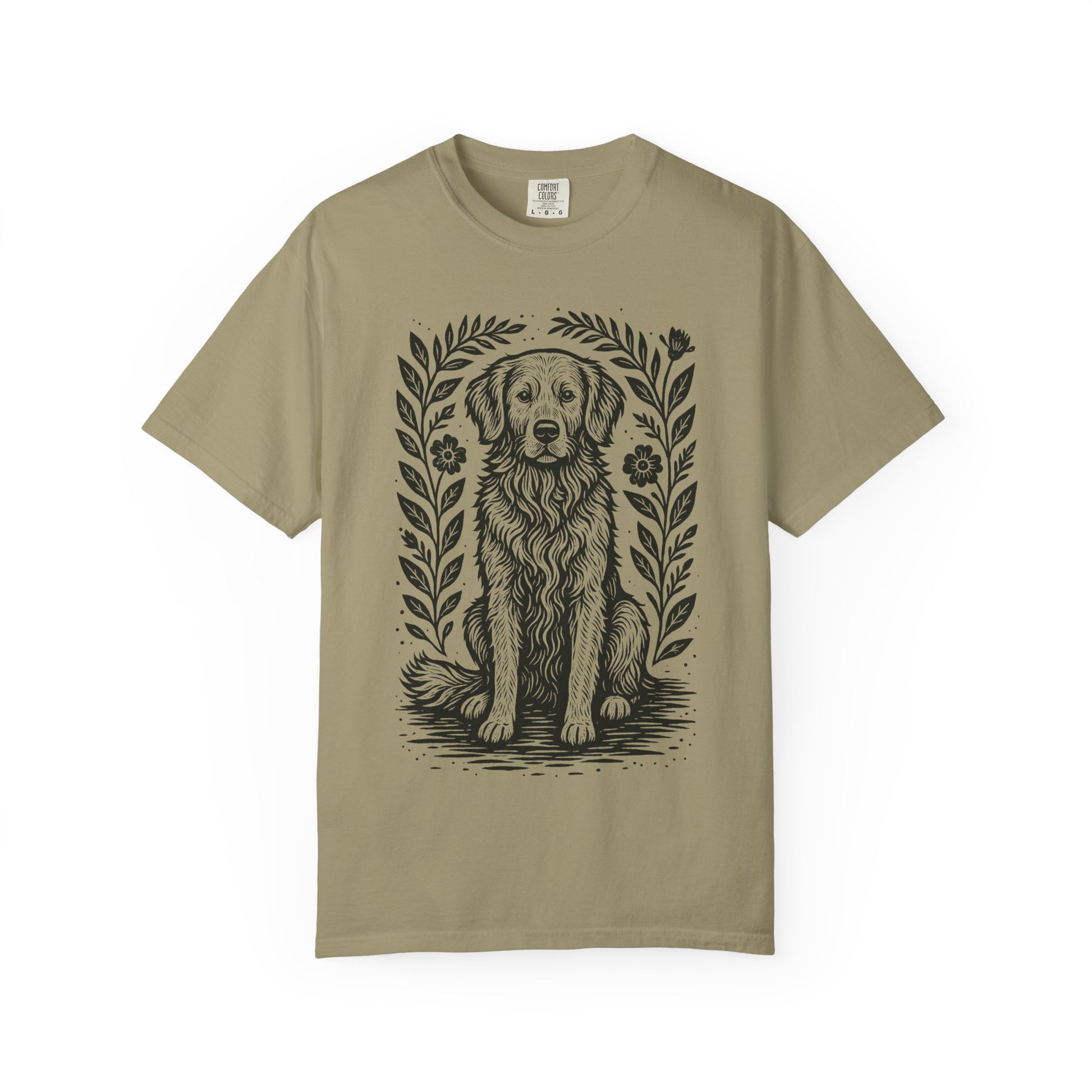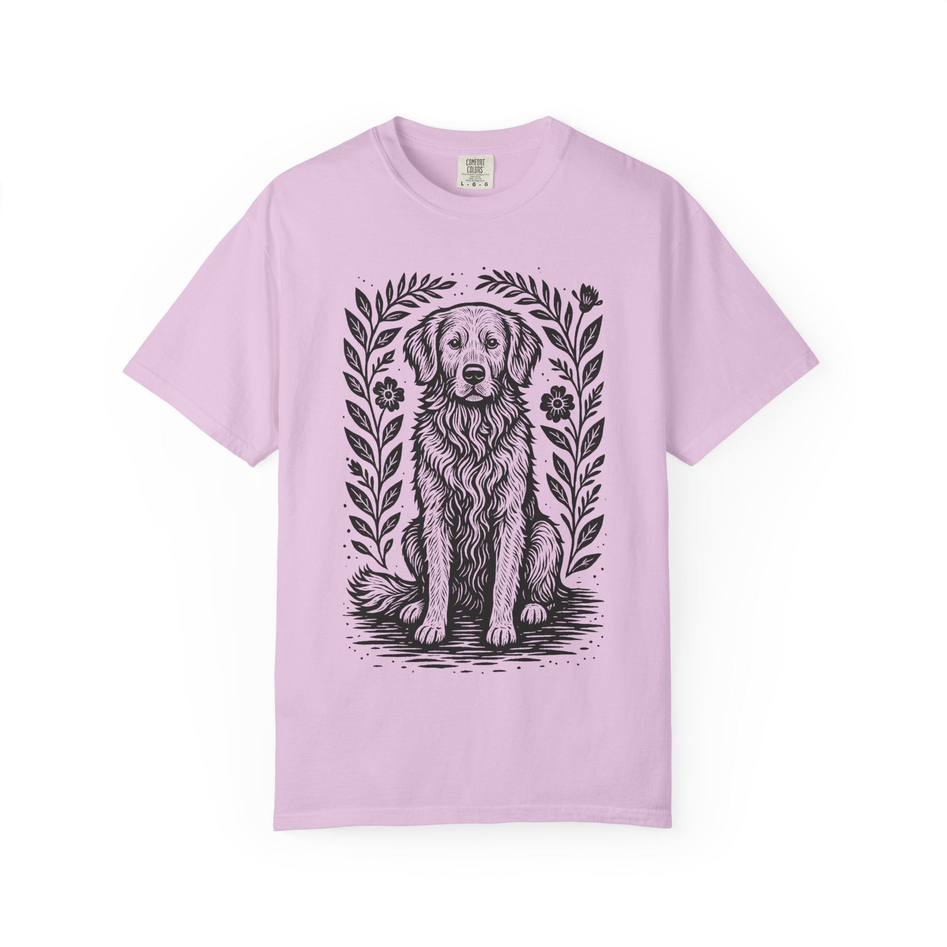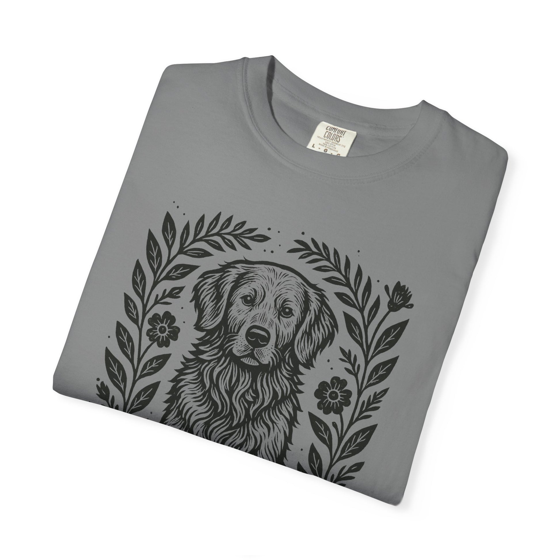 Golden Retriever Illustration T-shirt | Floral Laurel Dog Portrait Comfort Colors Dog Lovers T-shirt