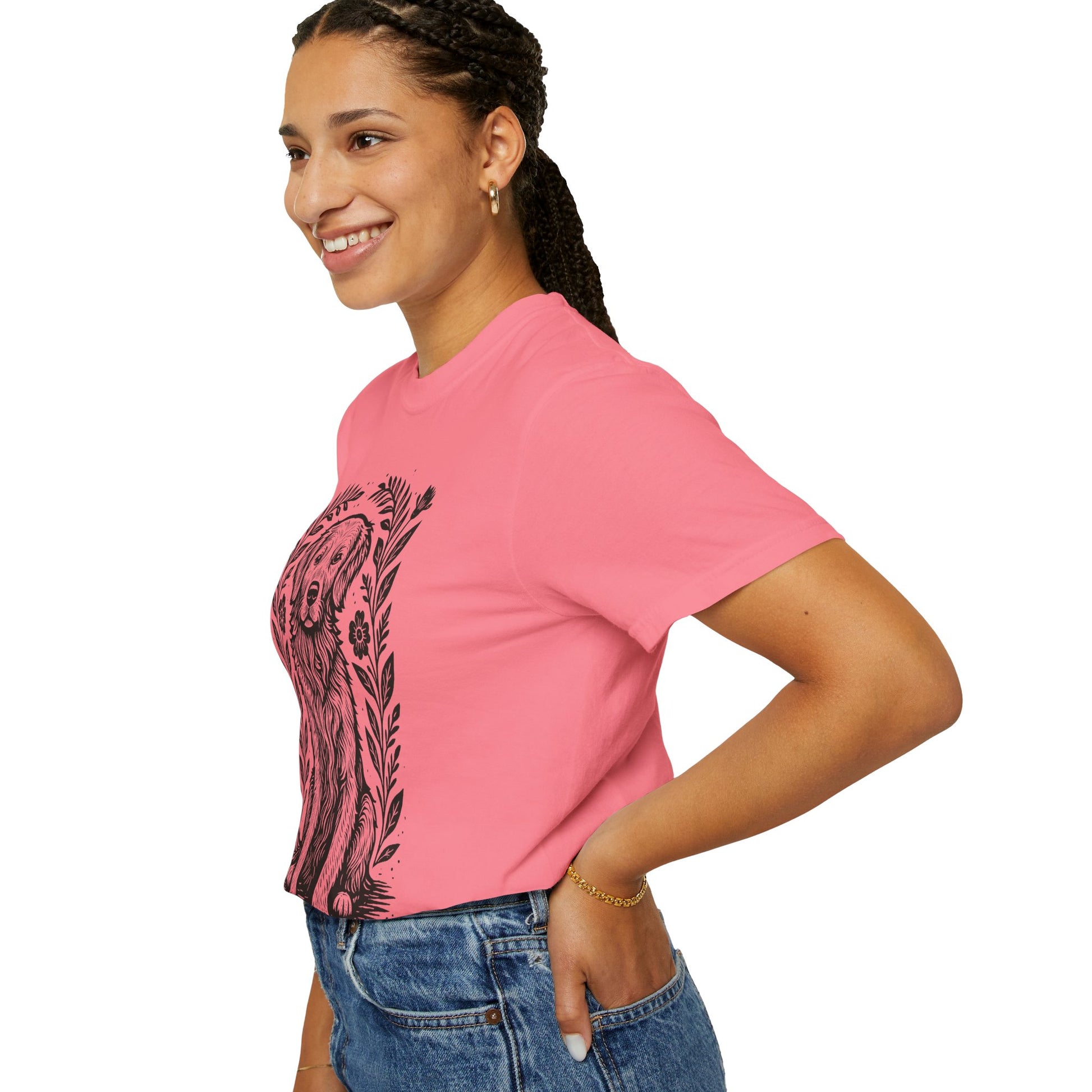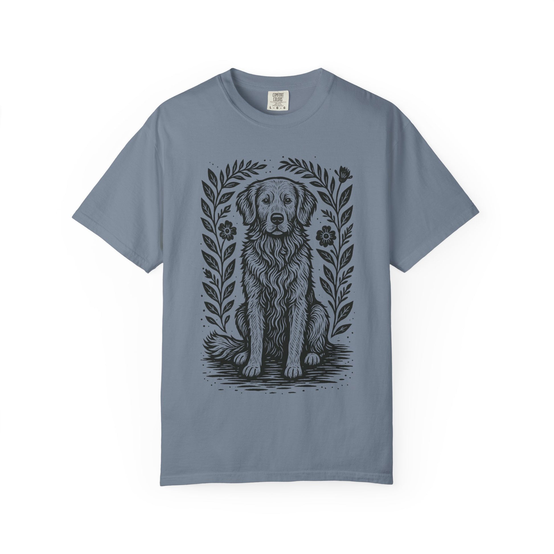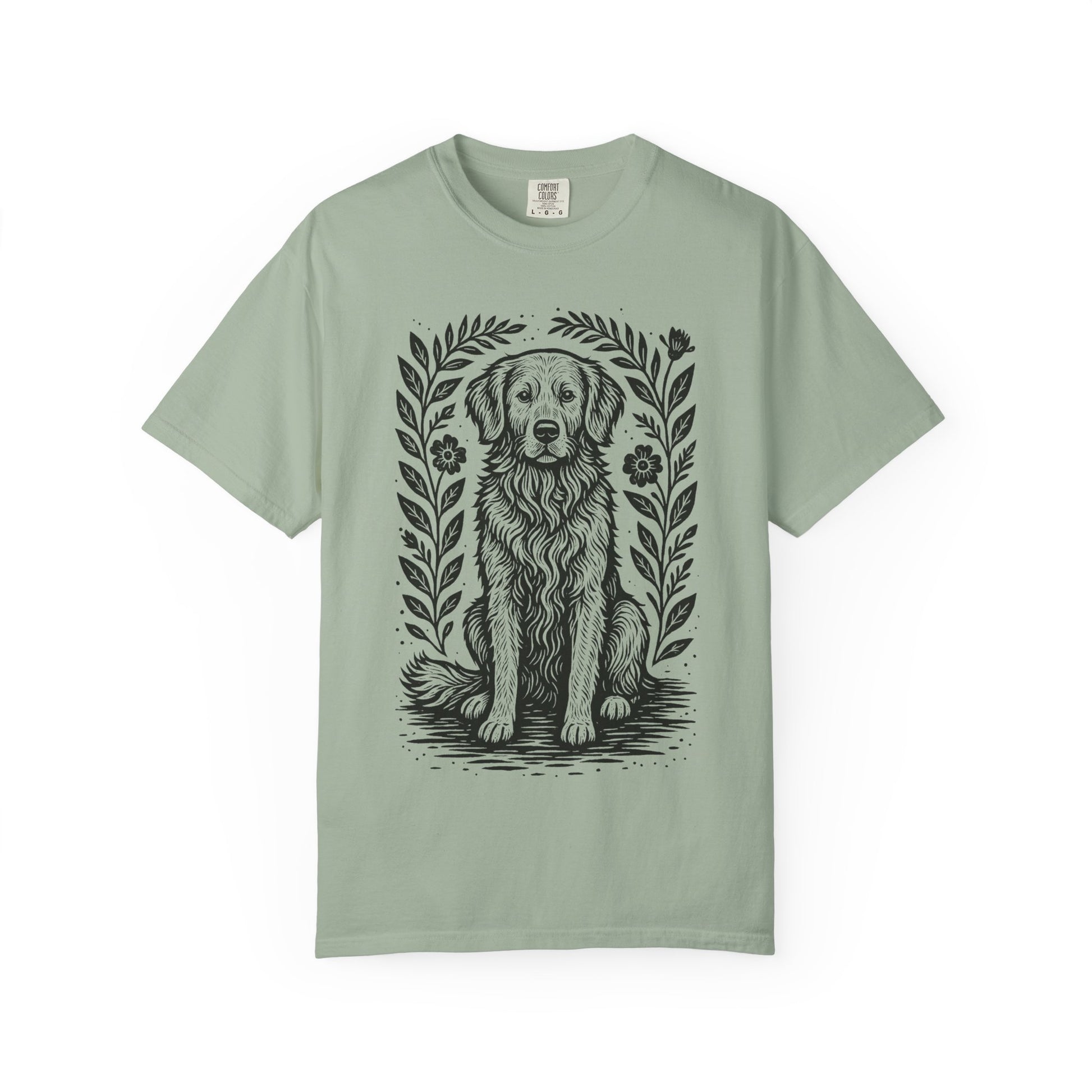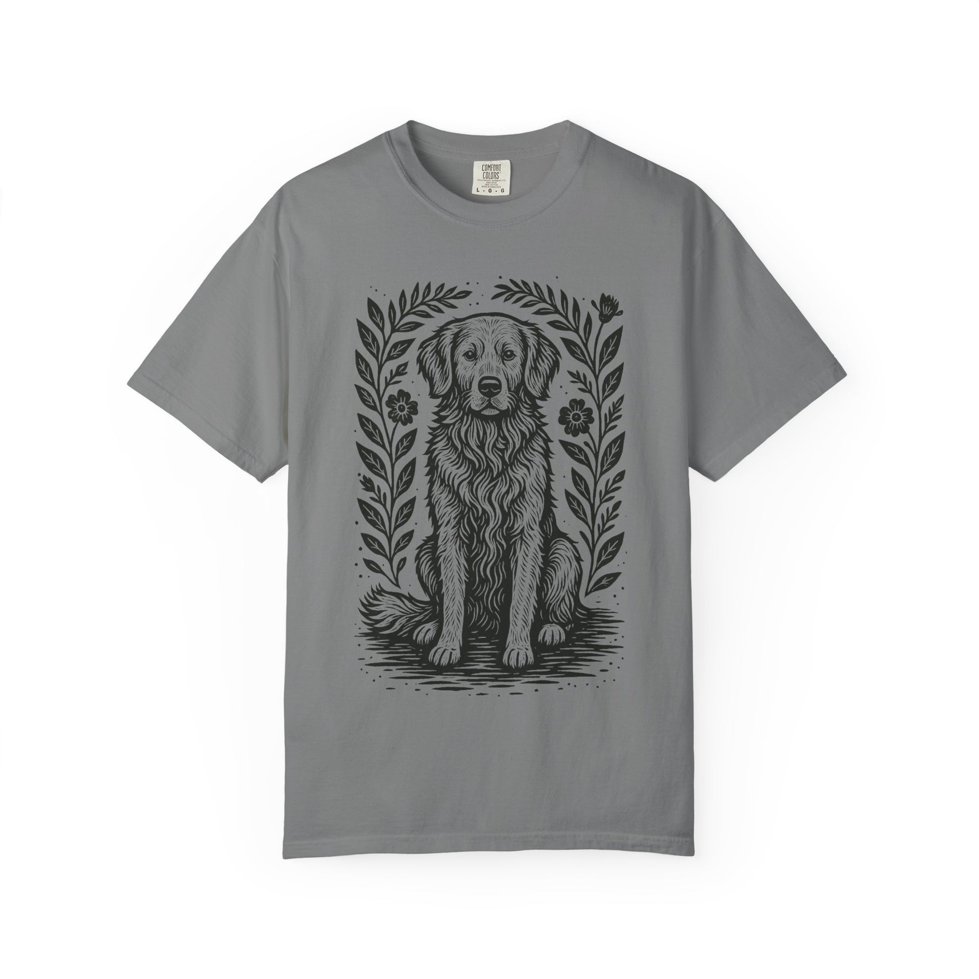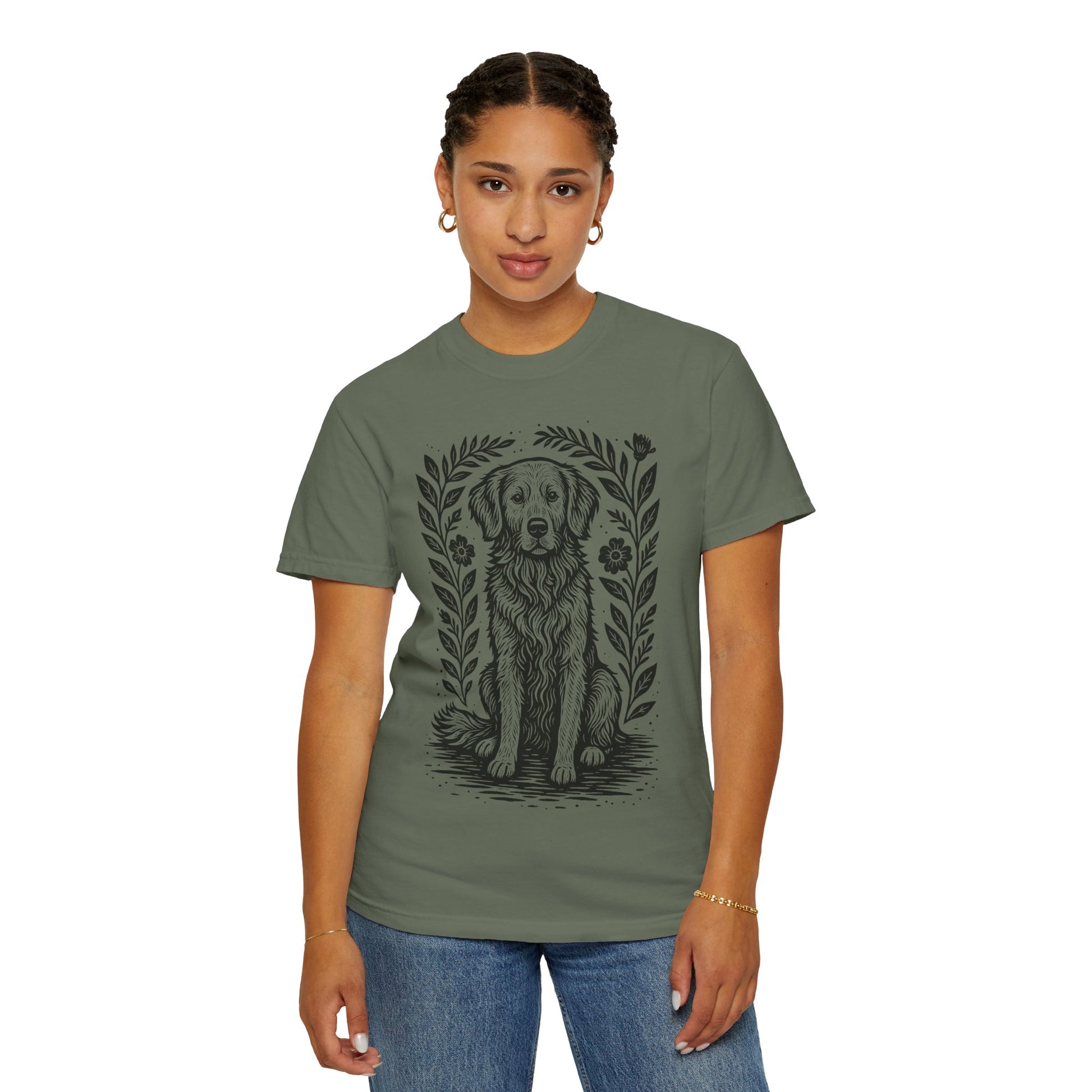 Golden Retriever Illustration T-shirt | Floral Laurel Dog Portrait Comfort Colors Dog Lovers T-shirt