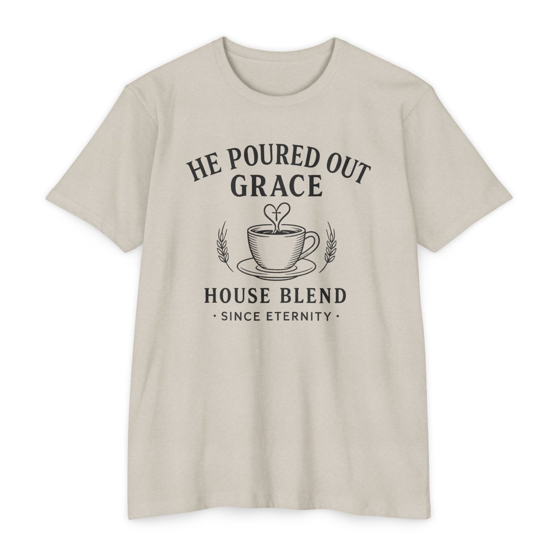 He Poured Out Grace Coffee Tee — "House Blend" Christian Faith Shirt