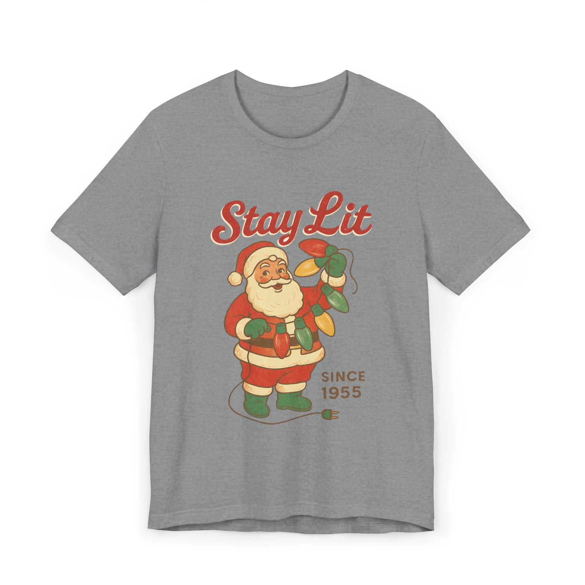 Stay Lit Vintage Santa T-Shirt, Funny Christmas Tee, Holiday Apparel, Unisex Holiday Shirt, Christmas Gift, Festive Wear