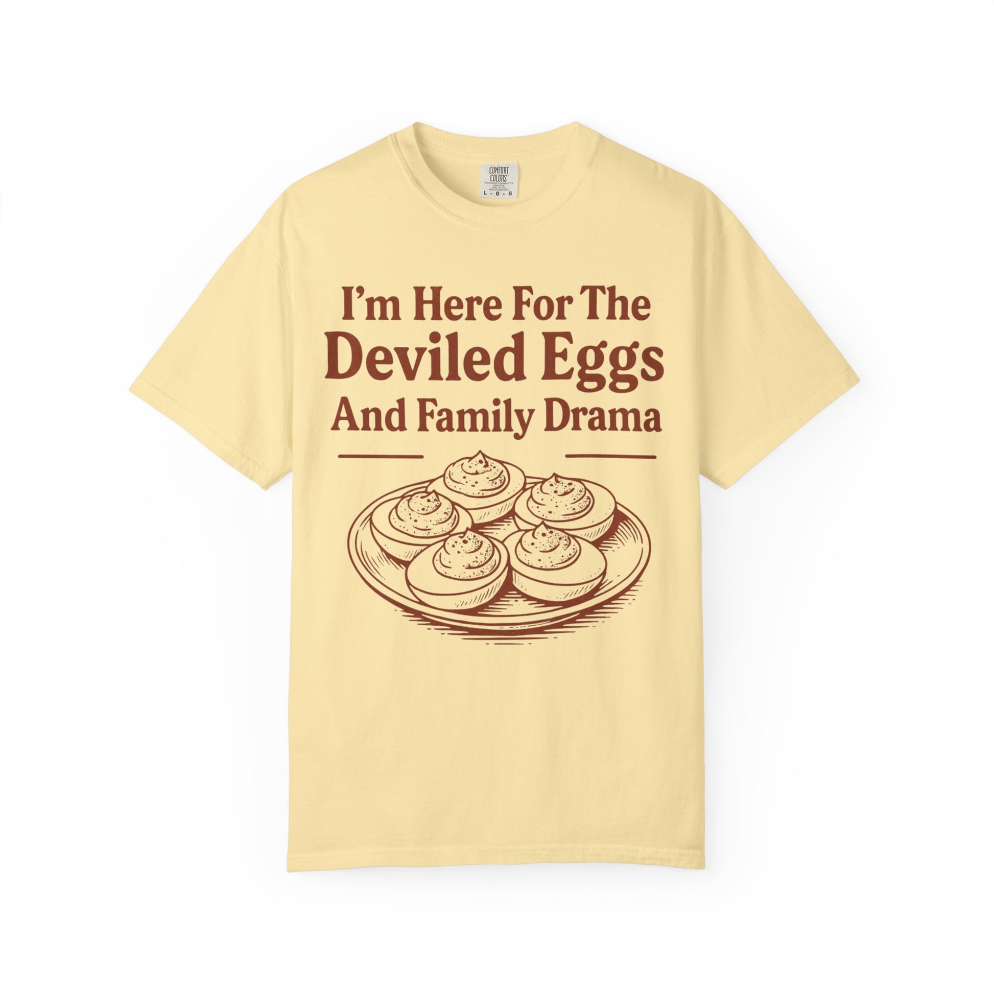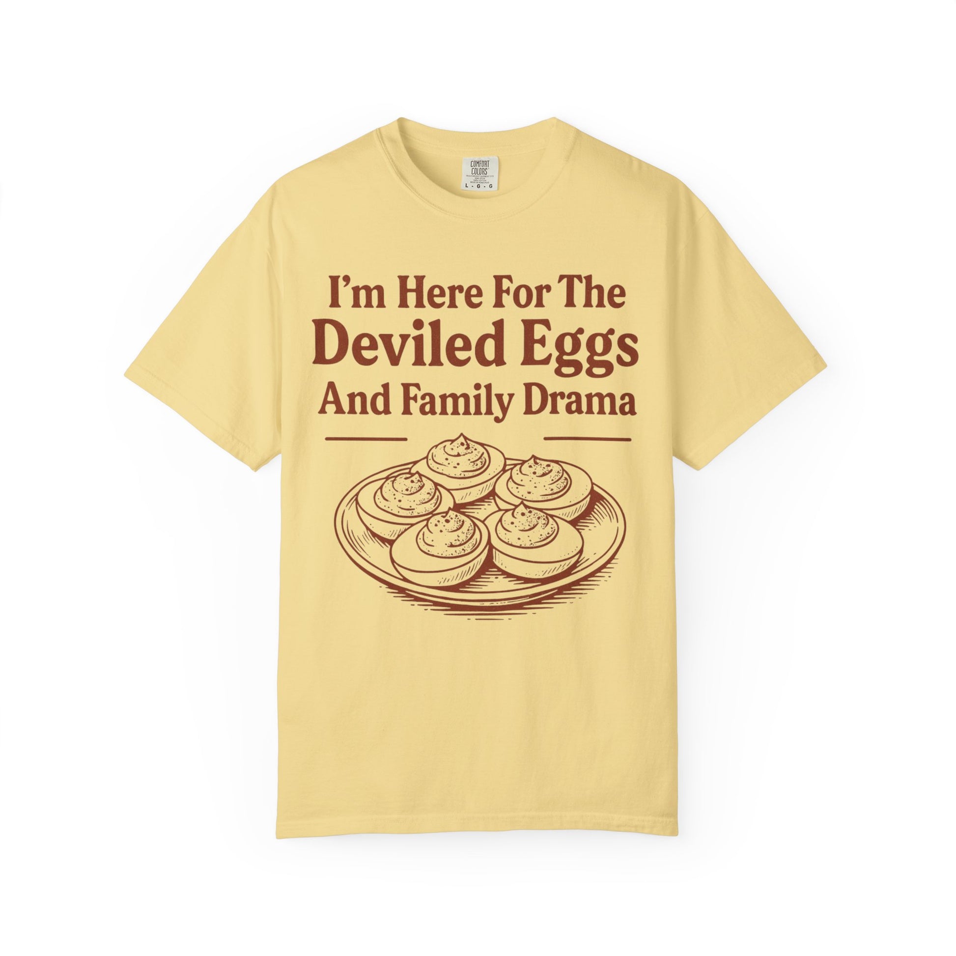 Thanksgiving Deviled Eggs Unisex Garment-Dyed T-shirt, Family Drama Holiday Tee, Funny Turkey Day Shirt, Fall Comfort Colors tshirt